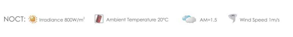 NOCT menunjukkan kondisi kinerja panel surya yang lebih realistis di dunia nyata. Dalam kondisi ini, suhu sel surya sekitar 45-50°C, intensitas cahaya matahari 800 W/m², dan kecepatan angin sekitar 1 m/s.
